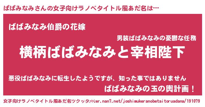| 欧米人風あだ名 | 『アンジェラ・ばばみなみ』 |