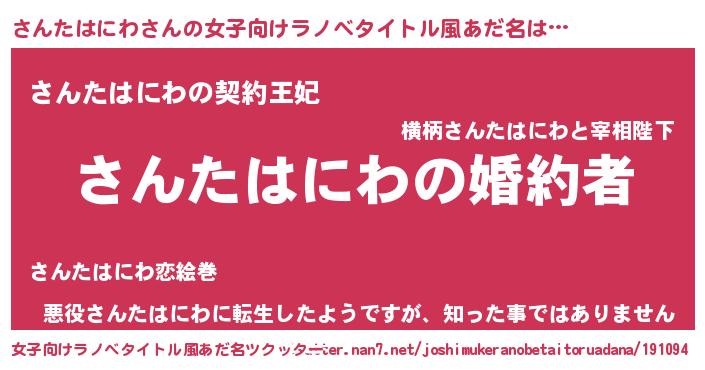 | ファンタジー風あだ名 | 『エターナルサンタハニワー』 |