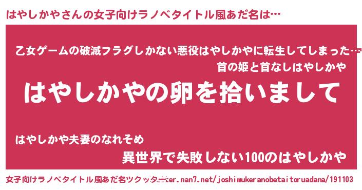 | ポケモン風あだ名 | 『ヒハヤシカヤ』『ハーヤイ』 |