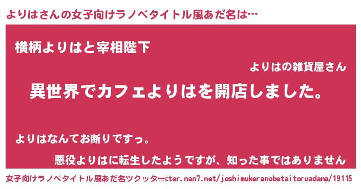 | ヒーロー風カッコイイあだ名 | 『ネオヨリハ』『仮面ヨリダー』 |