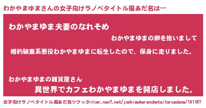 | ヘコむあだ名 | 『わかやまゆま(笑)』『わかっ子』 |