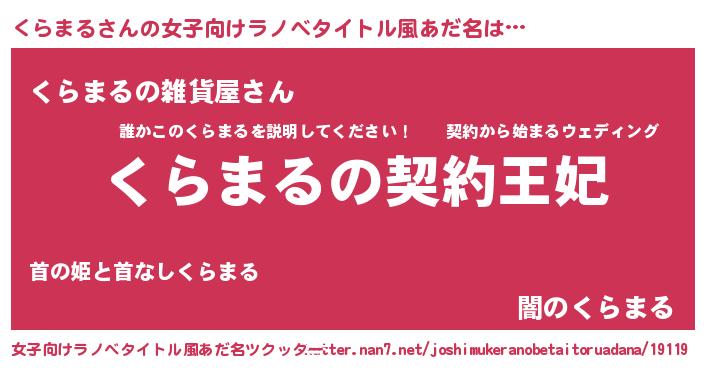 | 男性向けラノベタイトル風あだ名 | 『くらまるという概念が存在しない退屈な世界 』 |