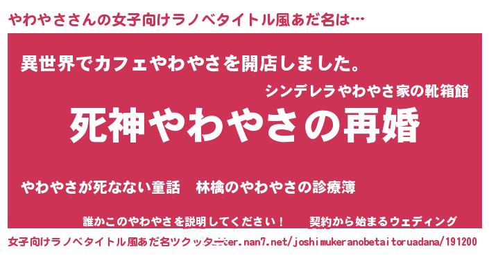 | 男性向けラノベタイトル風あだ名 | 『ノーゲーム・ノーヤワヤサ』 |