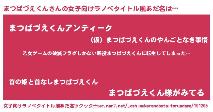 | 意味不明あだ名 | 『住所不定無職まつばづえくん(5歳)』 |