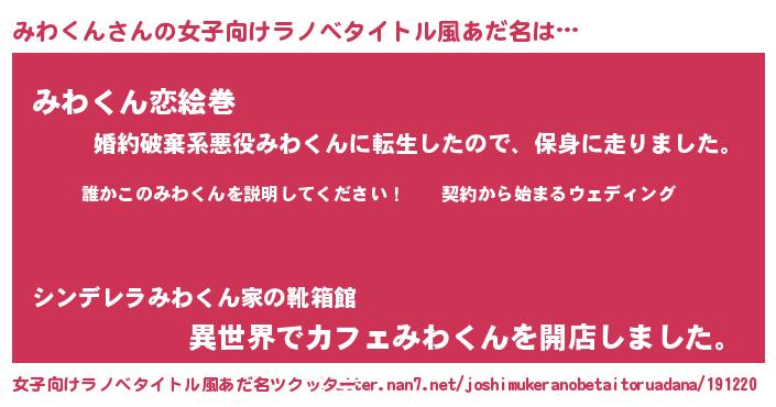| 胡散臭い通販商品みたいなあだ名 | 『億万長者になれるブレスレット…その名も「みわくん」』 |