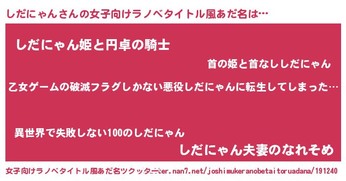 | 男性向けラノベタイトル風あだ名 | 『この素晴らしい世界にしだにゃんを!』 |
