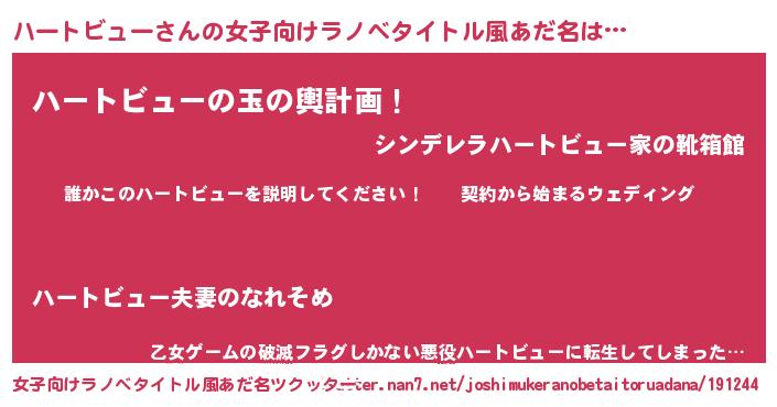 | 胡散臭い通販商品みたいなあだ名 | 『億万長者になれる霊験あらたかなお札…その名も「ハートビュー」』 |