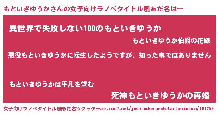| 胡散臭い通販商品みたいなあだ名 | 『あなたにだけ特別に提供する限定10本のレアな日本酒…その名も「もといきゆうか」』 |