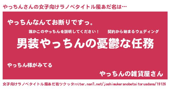 | 男性向けラノベタイトル風あだ名 | 『うちのやっちんが世界を掌握している!』 |