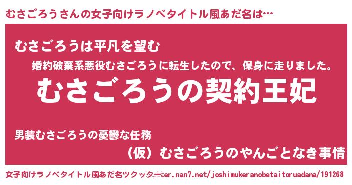 | 伝説のあだ名 | 『古より伝わる吟遊詩人むさごろう』 |