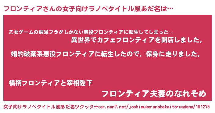 | 男性向けラノベタイトル風あだ名 | 『フロンティアスレイヤー』 |