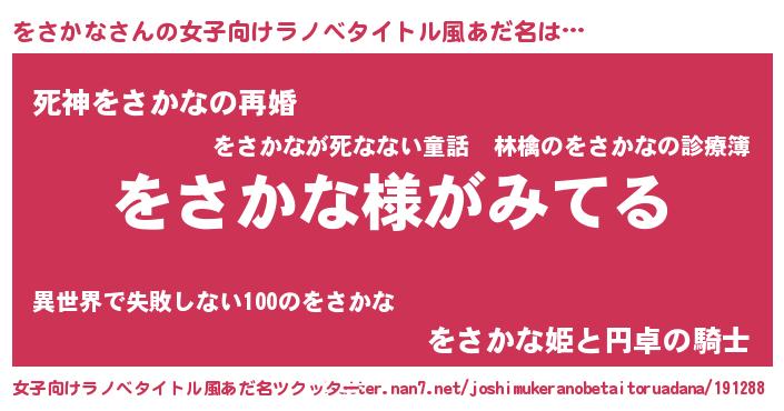 | 男性向けラノベタイトル風あだ名 | 『をさかなの嫁は女の子じゃないと思った?』 |