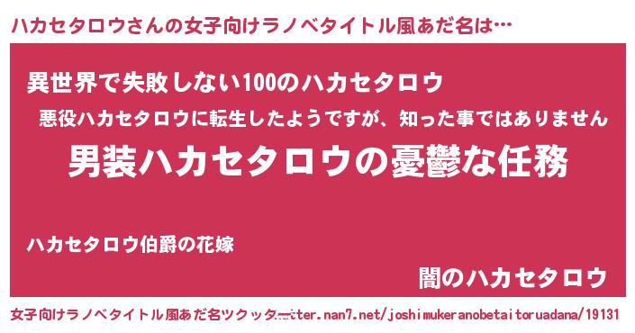 | 胡散臭い通販商品みたいなあだ名 | 『来世でも幸せになれる健康食品…その名も「ハカセタロウ」』 |