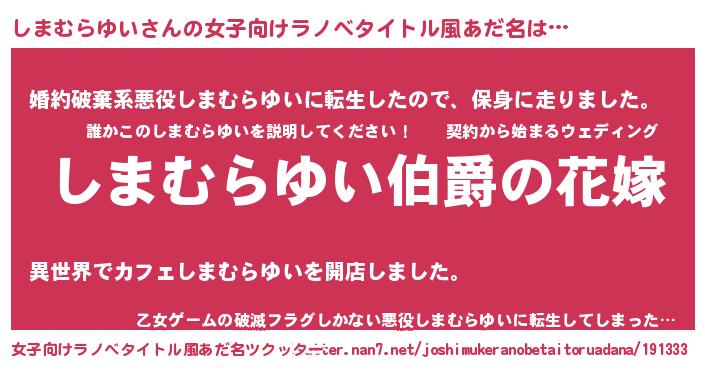 | 胡散臭い通販商品みたいなあだ名 | 『世界が平和になる高級そうな壺…その名も「しまむらゆい」』 |