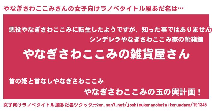 | 男性向けラノベタイトル風あだ名 | 『やはりやなぎさわここみの青春ラブコメはまちがっている 』 |
