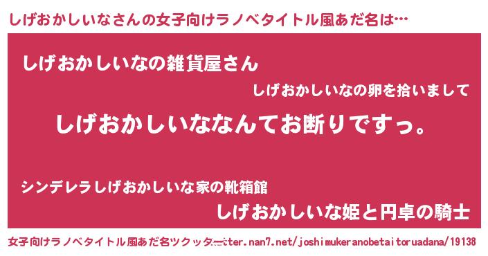 | 男性向けラノベタイトル風あだ名 | 『魔法科高校のしげおかしいな』 |