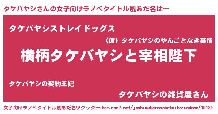 | 意味不明あだ名 | 『自称タケバヤシ』『ペロリンタケバヤシ』 |