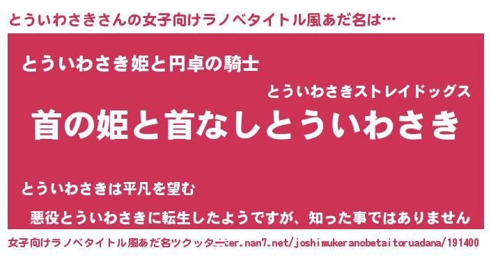 | 意味不明あだ名 | 『ペロリンとういわさき』 |