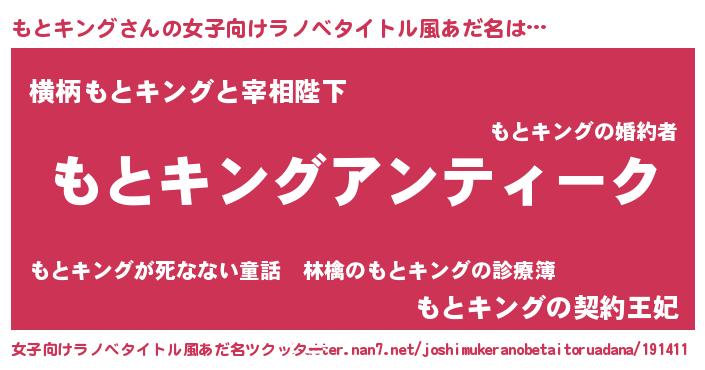 | 意味不明あだ名 | 『自称もとキング』『永久保存もとキング』 |