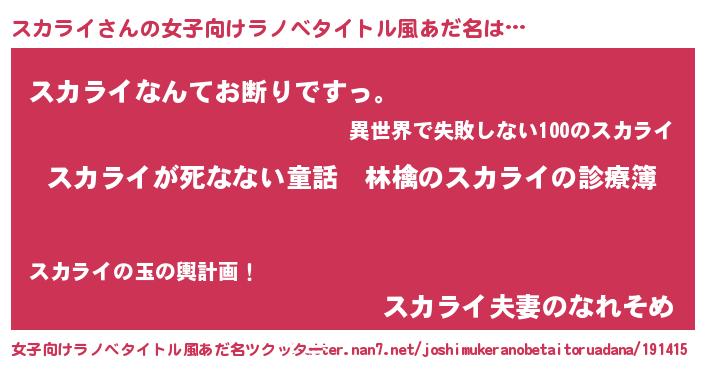| 男性向けラノベタイトル風あだ名 | 『魔弾の王とスカライ』 |