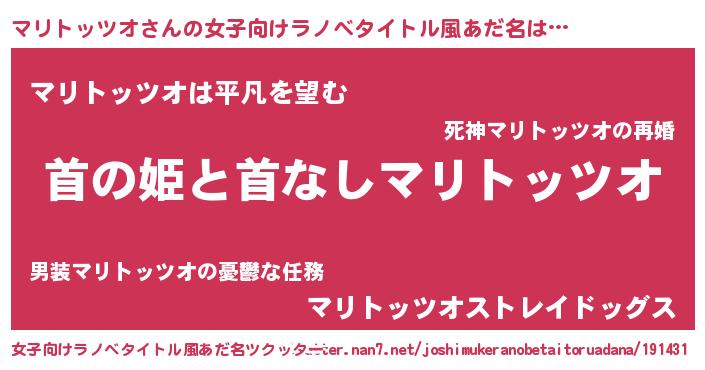 | 男性向けラノベタイトル風あだ名 | 『はたらくマリトッツオさま!』 |