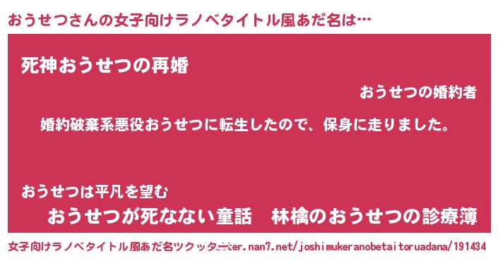 | 男性向けラノベタイトル風あだ名 | 『オウセツスレイヤー』 |