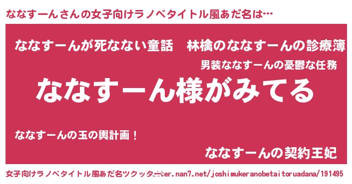 | 男性向けラノベタイトル風あだ名 | 『ななすーんの嫁は女の子じゃないと思った?』 |