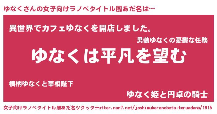| 男性向けラノベタイトル風あだ名 | 『ダンジョンにゆなくを求めるのは間違っているだろうか』 |