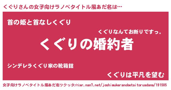 | 胡散臭い通販商品みたいなあだ名 | 『運命の人と巡り会える高級そうな壺…その名も「くぐり」』 |