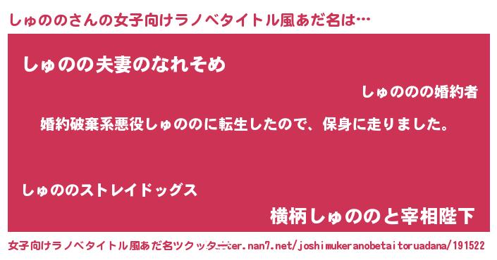 | 男性向けラノベタイトル風あだ名 | 『シュノノスレイヤー』 |
