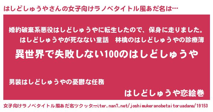 | 男性向けラノベタイトル風あだ名 | 『はしどしゅうやという概念が存在しない退屈な世界 』 |