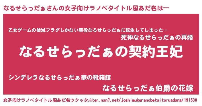 | 意味不明あだ名 | 『永久保存なるせらっだぁ』 |