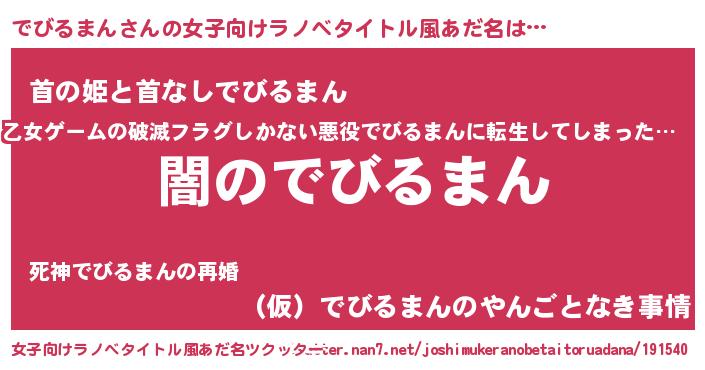 | 意味不明あだ名 | 『自称でびるまん』『ペロリンでびるまん』 |