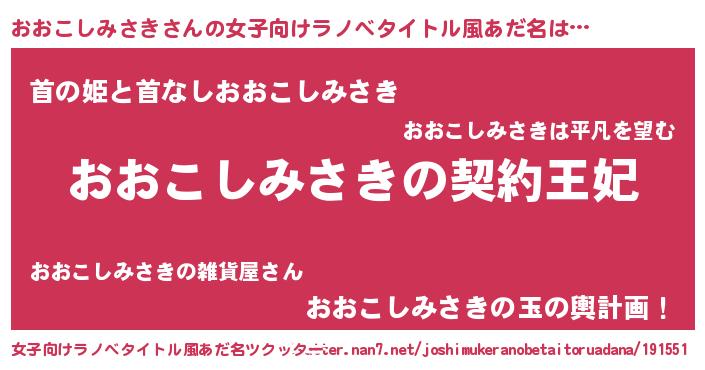| 男性向けラノベタイトル風あだ名 | 『おおこしみさきという概念が存在しない退屈な世界 』 |
