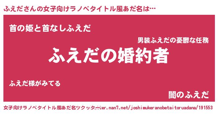 | 男性向けラノベタイトル風あだ名 | 『うちの娘の為ならば、俺はもしかしたらふえだも倒せるかもしれない。』 |