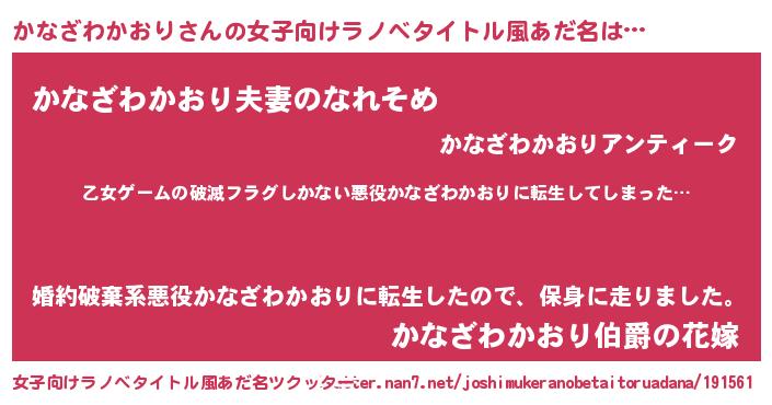 | 男性向けラノベタイトル風あだ名 | 『この素晴らしい世界にかなざわかおりを!』 |