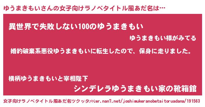 | 男性向けラノベタイトル風あだ名 | 『ユウマキモイスレイヤー』 |