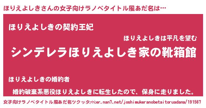 | 意味不明あだ名 | 『永久保存ほりえよしき』 |