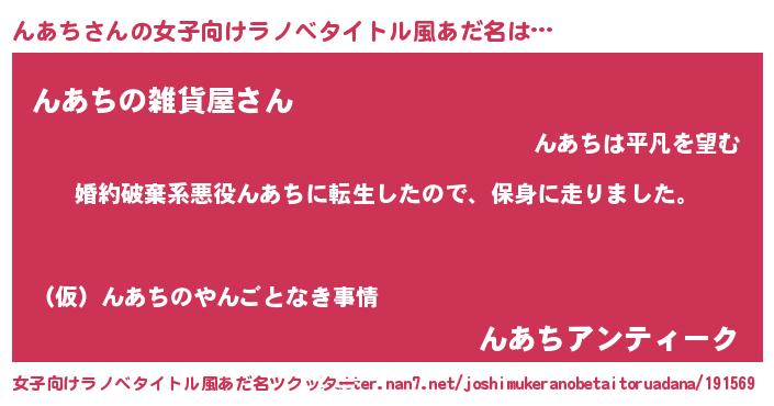 | ヒーロー風カッコイイあだ名 | 『ウルトラんあちマン』『黄金騎士ンア』 |
