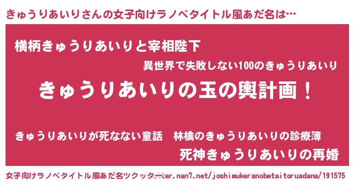 | 男性向けラノベタイトル風あだ名 | 『転生したらきゅうりあいりだった件』 |