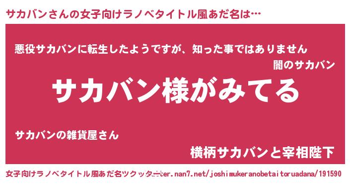 | 男性向けラノベタイトル風あだ名 | 『サカバンの嫁は女の子じゃないと思った?』 |