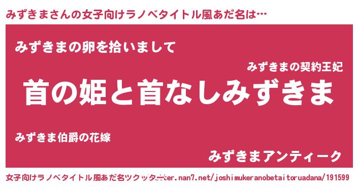 | 男性向けラノベタイトル風あだ名 | 『はたらくみずきまさま!』 |