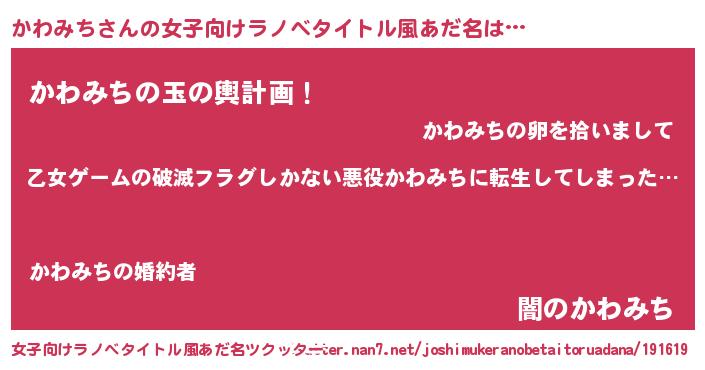 | 男性向けラノベタイトル風あだ名 | 『魔弾の王とかわみち』 |