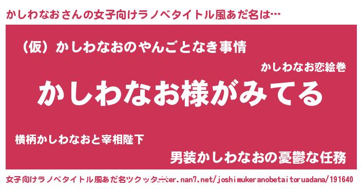 | 男性向けラノベタイトル風あだ名 | 『かしわなおの嫁は女の子じゃないと思った?』 |