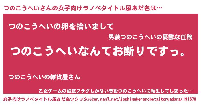 | 意味不明あだ名 | 『自称つのこうへい』 |