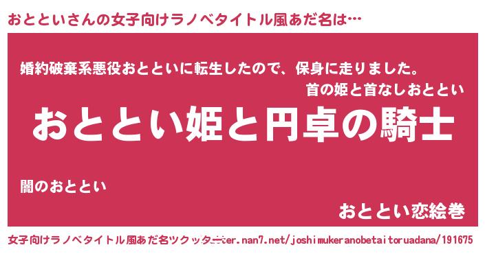 | 男性向けラノベタイトル風あだ名 | 『おとといの憂鬱』『オトトイスレイヤー』 |