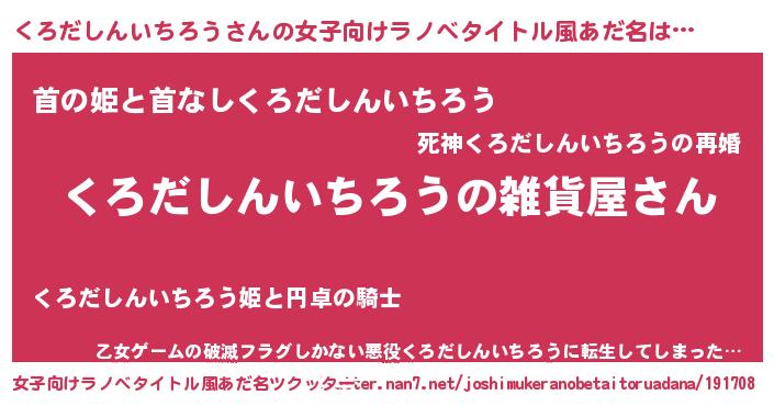 | 男性向けラノベタイトル風あだ名 | 『やはりくろだしんいちろうの青春ラブコメはまちがっている 』 |