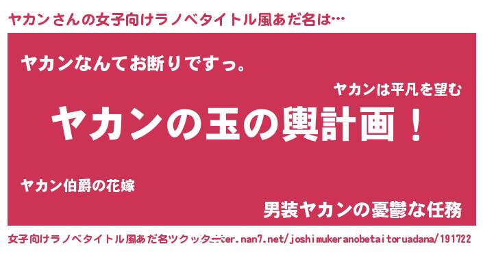 | ヒーロー風カッコイイあだ名 | 『最強戦士ヤカン』『暗黒騎士ヤカ』 |