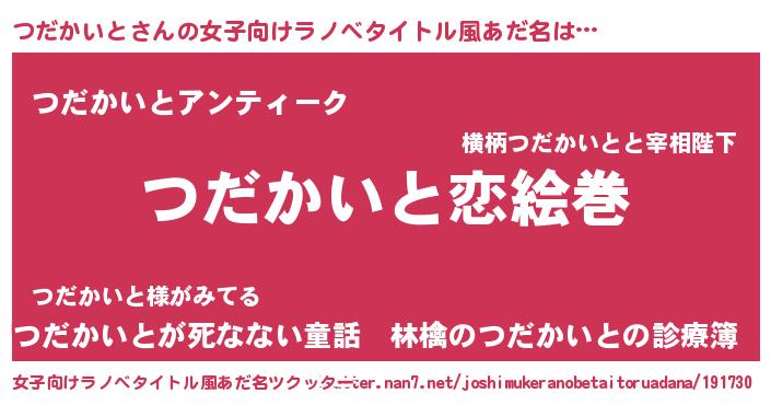 | 男性向けラノベタイトル風あだ名 | 『ノーゲーム・ノーツダカイト』 |