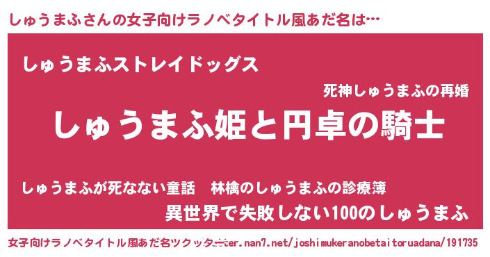 | 男性向けラノベタイトル風あだ名 | 『しゅうまふの憂鬱』 |